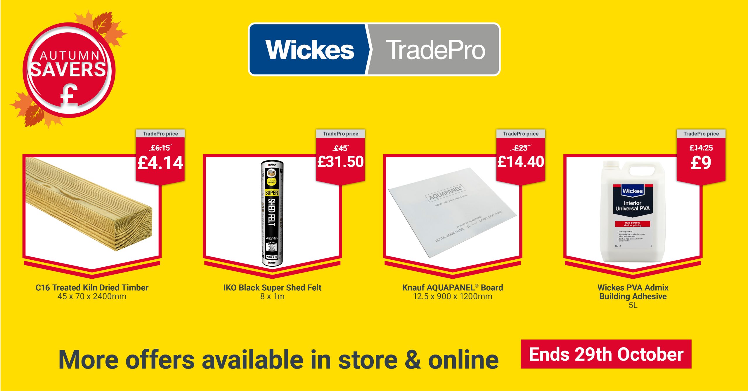 Wickes offers a wide range of products for home improvers, both DIY enthusiasts and trade professionals. Save on your next project with their latest Autumn Savers, available both online or in store. Offers end 29 October 2025.